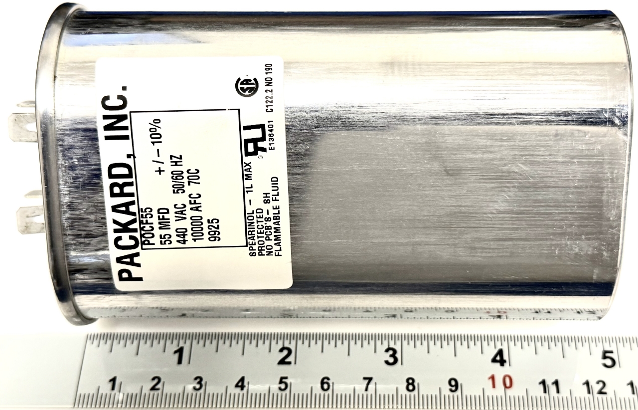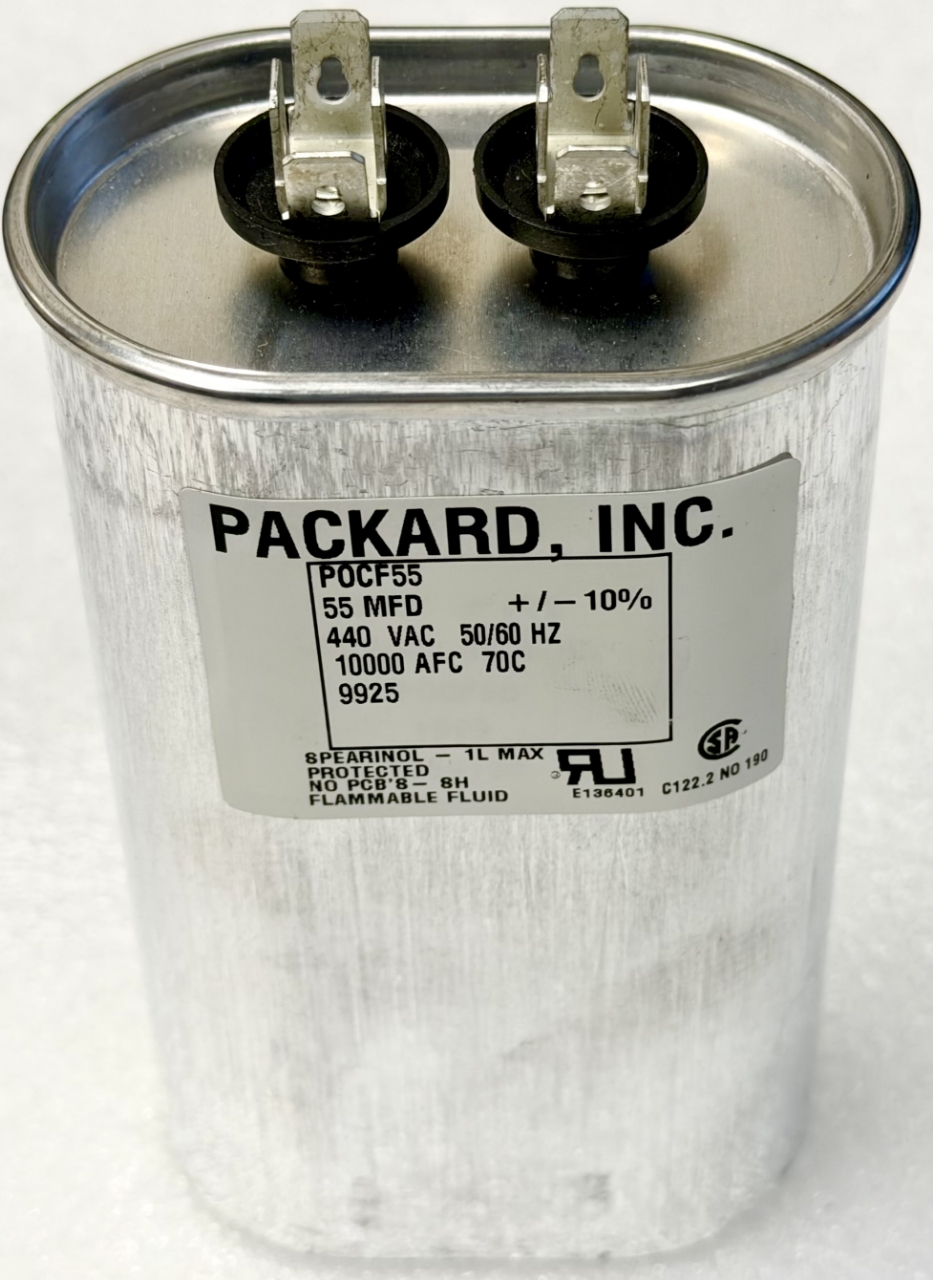 The 55MFD 440VAC, 55uF 440V, 55mF 440V, POCF55, G22-827, 120x70x50mm, Run Capacitor by Packard Inc is a high-quality, reliable component for HVAC systems. This run capacitor is designed for compatibility with TitanPro brand equipment and features a compact size of 120x70x50mm. With a voltage rating of 440V and built by Packard, this capacitor ensures efficient performance and durability in HVAC and refrigeration applications.