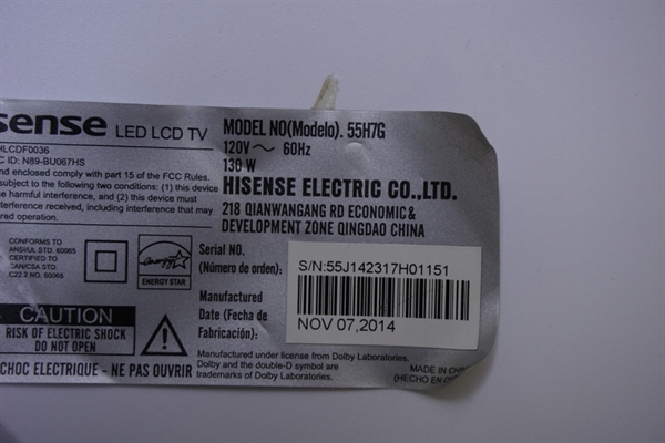 THIS PART PULLED FROM DAMAGE 55" HISENSE LED TV MODEL # 55H7G.
