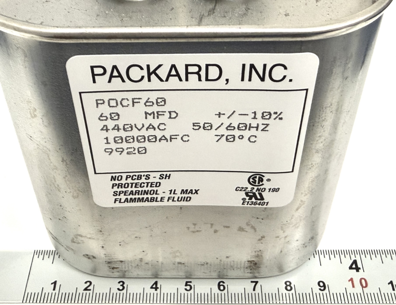 Manufacturer part number: 60MFD 440VAC, 60uF 440V, 60mF 440V, POCF60, G22-828, 90x90x50, Run Capacitor