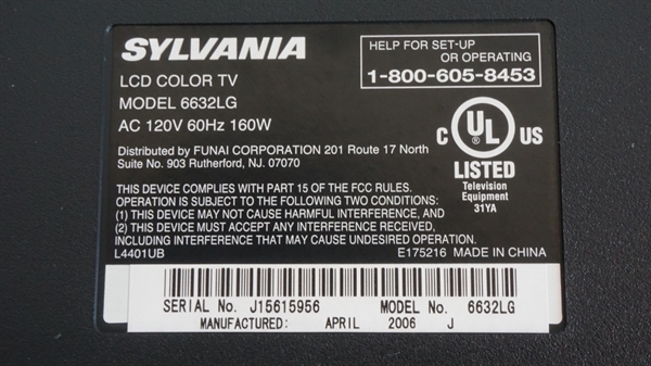 6632LG, SYLVANIA 6632LG LCD TV, SYLVANIA 32 LCD TV