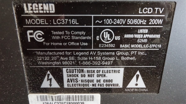 THIS PART WAS PULLED FROM LENGEND 37" LCD TV, MODEL # LC3716L, UNIT WORKING COMPATBLE ALL MODEL # BELOW.