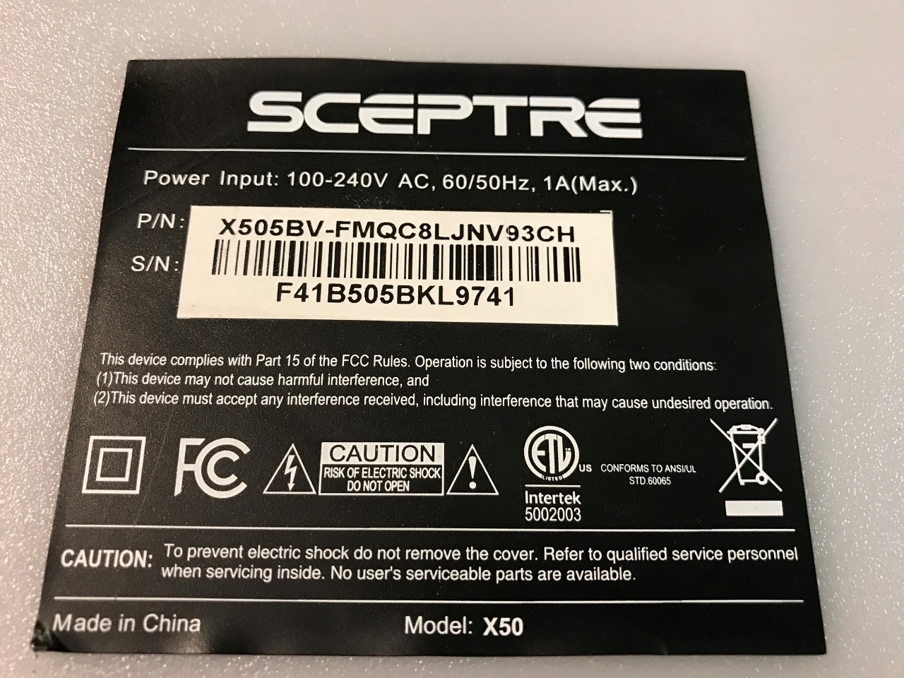 THIS PART WAS PULLED FROM SCEPTRE 50" LED TV MODEL # X505BV-FMQC, X505BV-FMQC8LJAV93CH, X50.