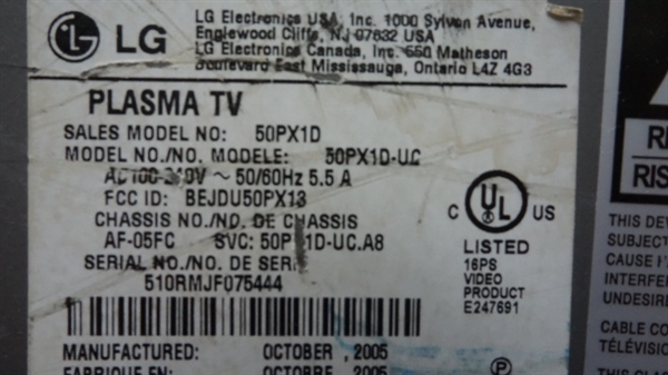 THIS PART WAS PULLED FROM LG PLASMA 50" TV MODEL # 50PX1D, UNIT WORKING COMPATIBLE ALL MODEL # BELOW.