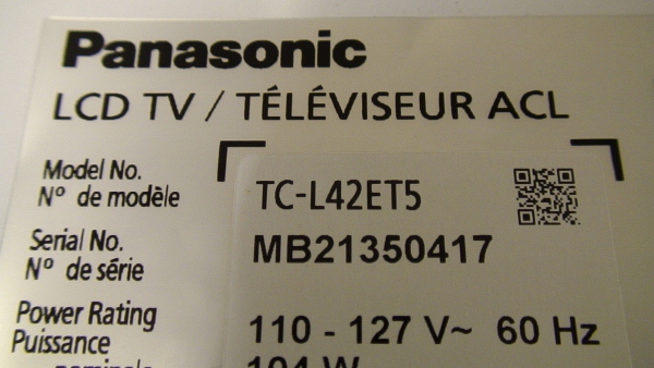 THIS PART PULLED FROM WORKING 42" PANASONIC LED TV , MODEL # TC-L42ET5,.