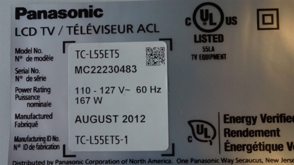 THIS PART WAS PULLED FROM PANASONIC 55" LED TV MODEL # TC-L55ET5, UNIT WORKING COMPATIBLE ALL MODEL # BELOW.