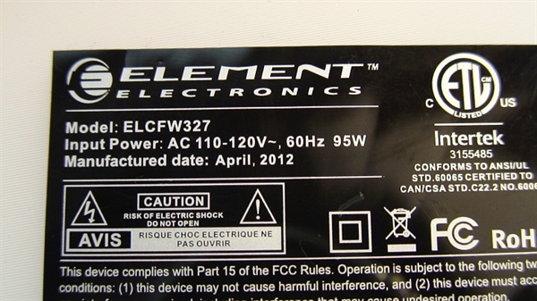 THIS PART PULLED FROM WORKING 32" ELEMENT LCD TV MODEL # ELCFW327, UNIT WORKING COMPATIBLE ALL MODEL # BELOW.