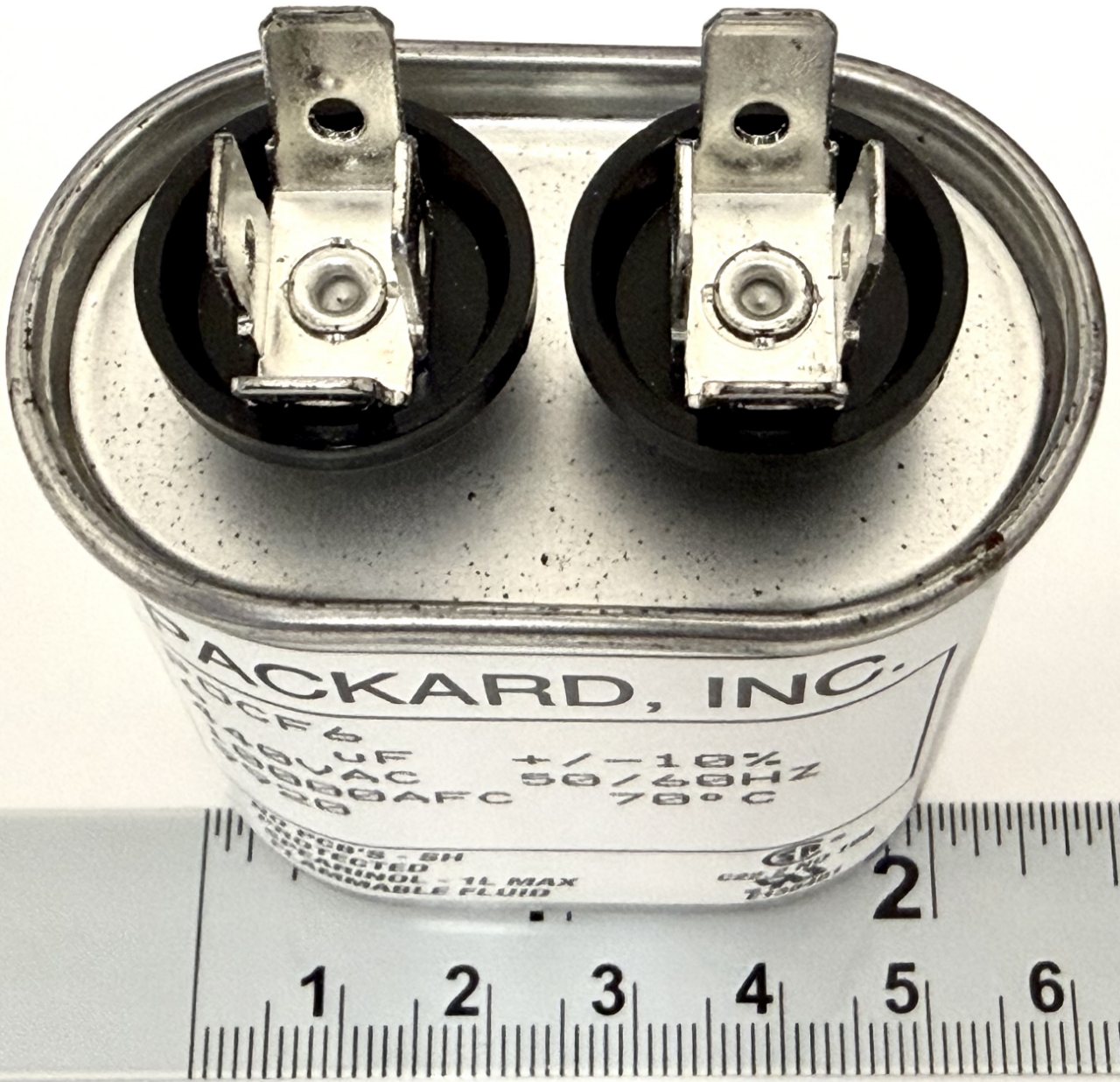 Manufacturer part number: 6MFD 440VAC, 6uF 440V, 6mF 440V, POCF6, G21-931, 58x55x33, Run Capacitor