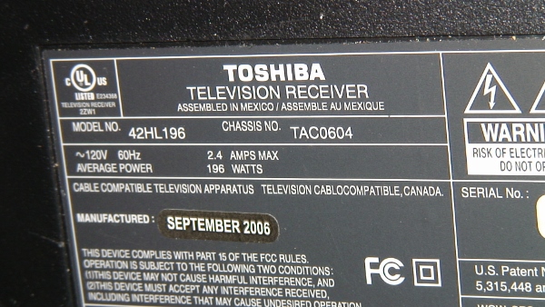 THIS PART WAS PULLED FROM WORKING TOSHIBA 52" LCD MODEL# 52HL167, CHASSIS # TAC0727 , UNIT WORKING COMPATIBLE MODEL # BELOW.