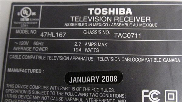 THIS PART WAS PULLED FROM TOSHIBA 47" LCD MODEL# 47HL167, CHASSIS # TAC0711 , UNIT WORKING COMPATIBLE TOSHIBA MODEL #.