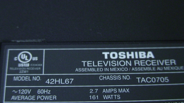 THIS PART WAS PULLED FROM TOSHIBA 42" LCD TV MODEL# 42HL67, CHASSIS # TAC0705, UNIT WORKING COMPATIBLE ALL MODEL # BELOW.