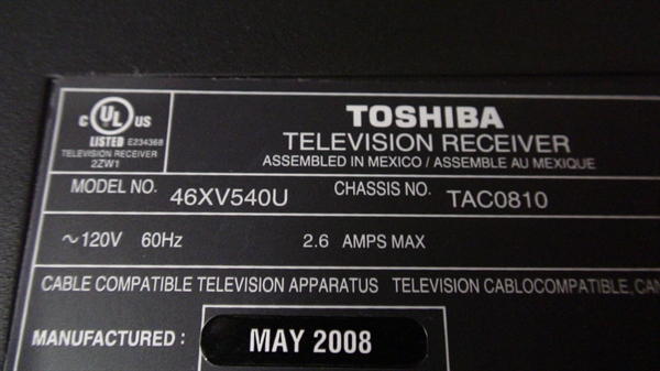 THIS PART WAS PULLED FROM WORKING TOSHIBA 46" LCD, MODEL # 46XV540U, CHASSIS NO : TAC0810, UNIT WORKING COMPATIBLE ALL MODEL # BELOW.