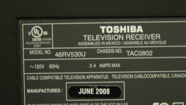 THIS PART PULLED FROM WORKING 46" TOSHIBA LCD MODEL # 46RV530U, .