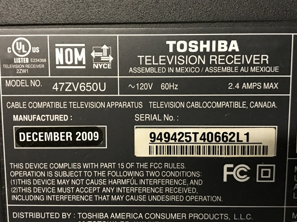 THIS PART WAS PULLED FROM TOSHIBA 47" LCD TV, MODEL # 47ZV650U, UNIT WORKING COMPATIBLE ALL MODEL # BELOW.