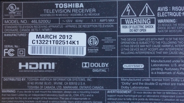 THIS PART WAS PULLED FROM TOSHIBA 46" LED TV, MODEL # 46L5200U, UNIT WORKING COMPATIBLE ALL MODEL # BELOW.