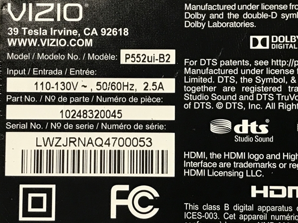 THIS PART WAS PULLED FROM VIZIO 55" LED TV, MODEL # P552UI-B2.