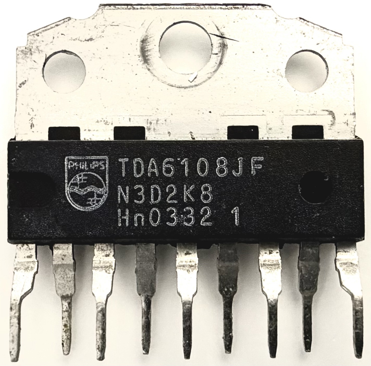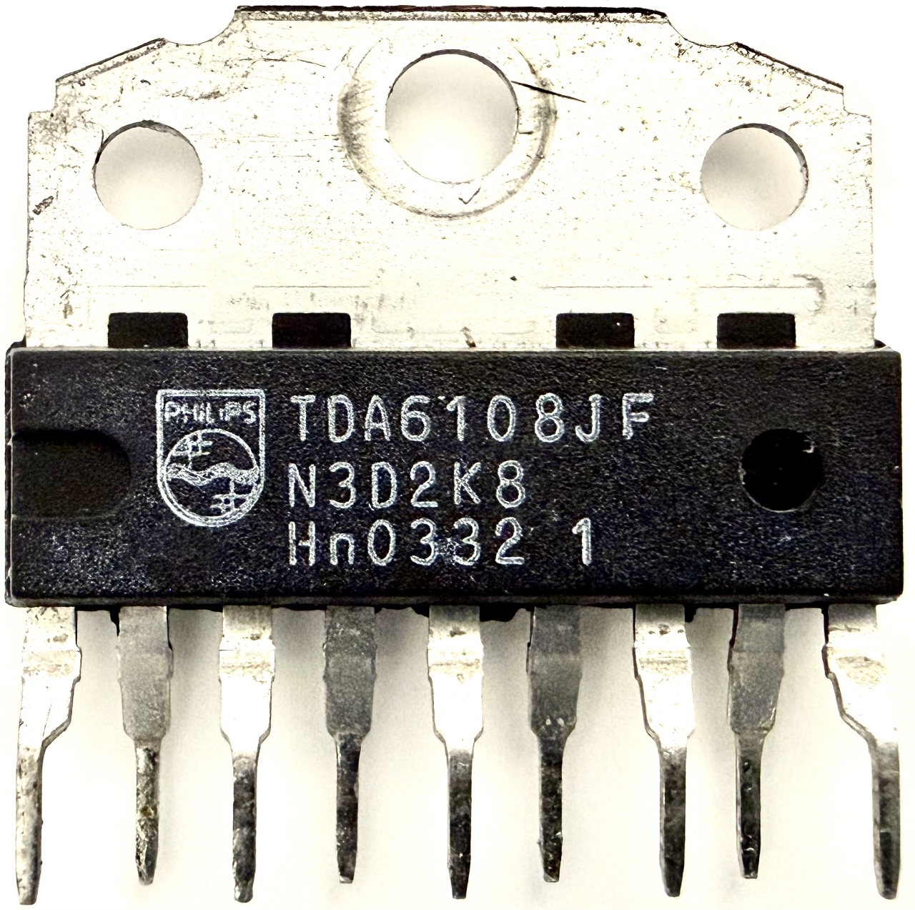 The TDA6108JF is a triple video output amplifier integrated circuit (IC) primarily used to drive the cathodes of a color Cathode Ray Tube (CRT) in televisions and monitors.