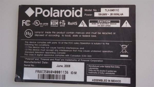 THIS PART WAS PULLED FROM POLAROID 40" LCD MODEL# TLX-04011C, UNIT WORKING COMPATIBLE ALL MODEL # BELOW.
