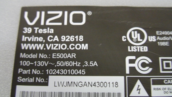 THIS PART PULLED FROM WORKING 50" VIZIO LCD TV, MODEL # E500AR.