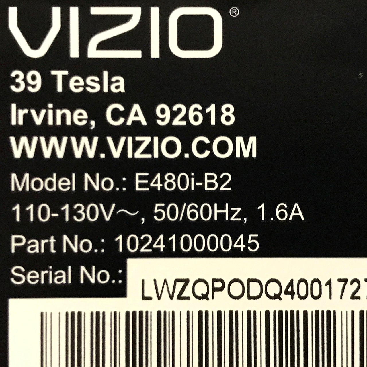 VIZIO E480I-B2 LWZQPODP, E480I-B2 LWJQPOJQ