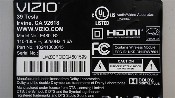 THIS PART WAS PULLED FROM VIZIO 48" LED MODEL # E480I-B2, UNIT WORKING COMPATIBLE ALL MODEL # BELOW.