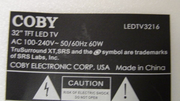 THIS PART PULLED FOR WORKING 32" COPY LED TV, MODEL # LEDTV3216.