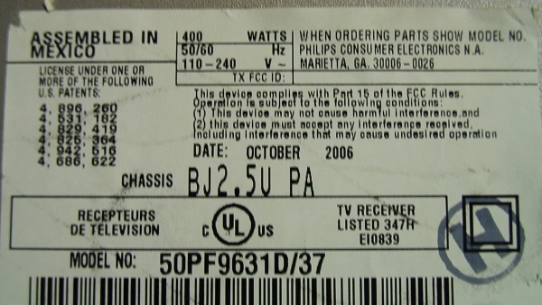 THIS PART PULLED FROM WORKING 50" PHILIPS, PLASMA TV MODEL # 50PF9631D/37,CHASSIS B32.5U PA, UNIT WORKING COMPATIBLE ALL MODEL # BELOW.