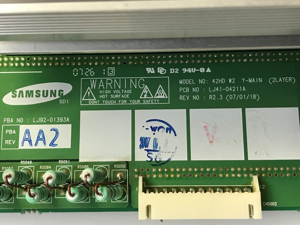 PHILIPS 42" PLASMA TV Y- MAIN BOARD (MODEL NO : 42HD W2 Y-MAIN (2LAYER) PCB NO : LJ41-04211A, REV NO : R2.3 (07/01/18)) UNIT FULL FUNCTION TESTED & CERTIFIED BY TECHNICIAN (100% WORKING CONDITION).