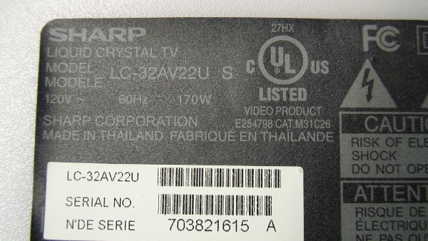 THIS PART PULLED FROM WORKING SHARP 32" LCD TV MODEL # LC-32AV22U, UNIT WORKING COMPATIBLE ALL MODEL # BELOW.