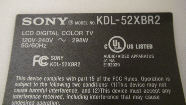 A-1216-258-A, A1197877D, 1-871-244-13, A-1214-123-B, A1252228A, KDL-40XBR2, A1212254A, A-1212-254-A, 1-871-244-13, A1197877E, KDL-46XBR2, KDL-46XBR3, KDL-40XBR4, KDL-52XBR2, KDL-52XBR3, SONY 52 AU BOARD
