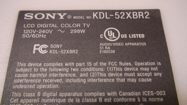 THIS PART WAS PULLED FROM SONY 52" LCD MODEL # KDL-52XBR2 , UNIT WORKING COMPATIBLE ALL MODEL # BELOW.