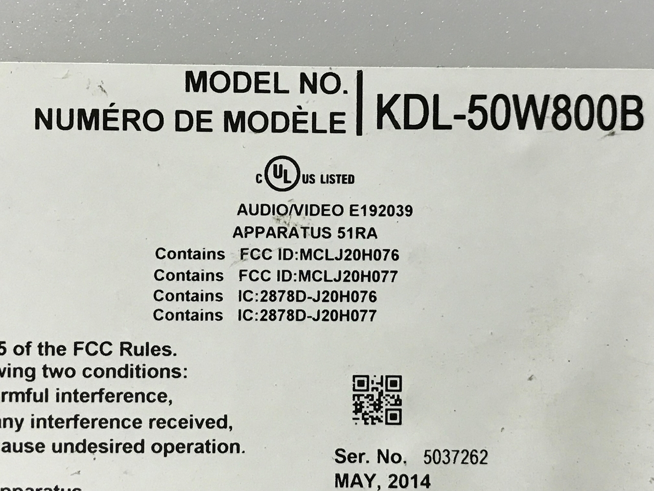THIS PART WAS PULLED FROM SONY 50" LED TV MODEL # KDL-50W800B.