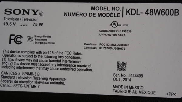 Manufacturer part number: A-2037-764-A, A-2037-764-B, A-2037-764-C, A-2037-764-D, 1-889-202-22, 173457422, A2037451B, KDL-48W600B, KDL-48W590B