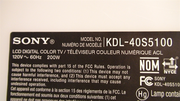 A1650550A, A-1650-550-A, 1-879-189-11, 173067911, SONY LOGO, HLR1 MOUNT, KDL-40S5100, KDL-52S5100, KDL-46S5100, KDL-46S504, KDL-46S5100, NEB, 5S1