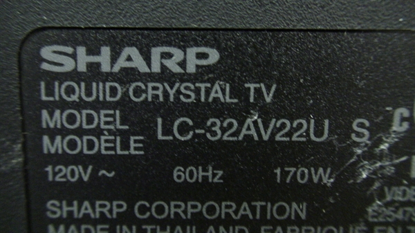 THIS PART WAS PULLED FROM SHARP 32" LCD MODEL # LC-32AV22U, UNIT WORKING COMPATIBLE ALL MODEL # BELOW.
