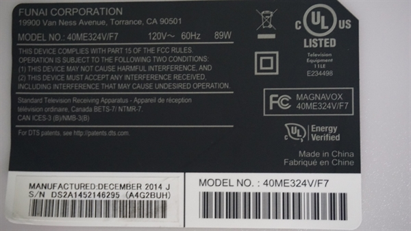 Magnavox 40ME324V/F7 DS1, 40ME324V/F7 DS2