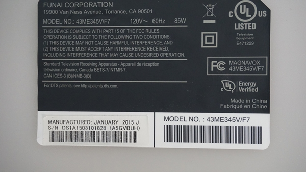 THIS PART WAS PULLED FROM MAGNAVOX 43" LED TV, MODEL # 43ME345V/F7.