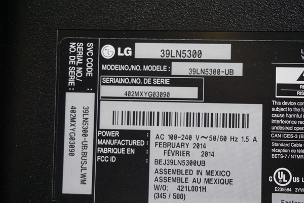 Manufacturer part number: ABA74429203, ABA74429201, AAN74269207, AAN74269205, AAN74269203, 39LN5300