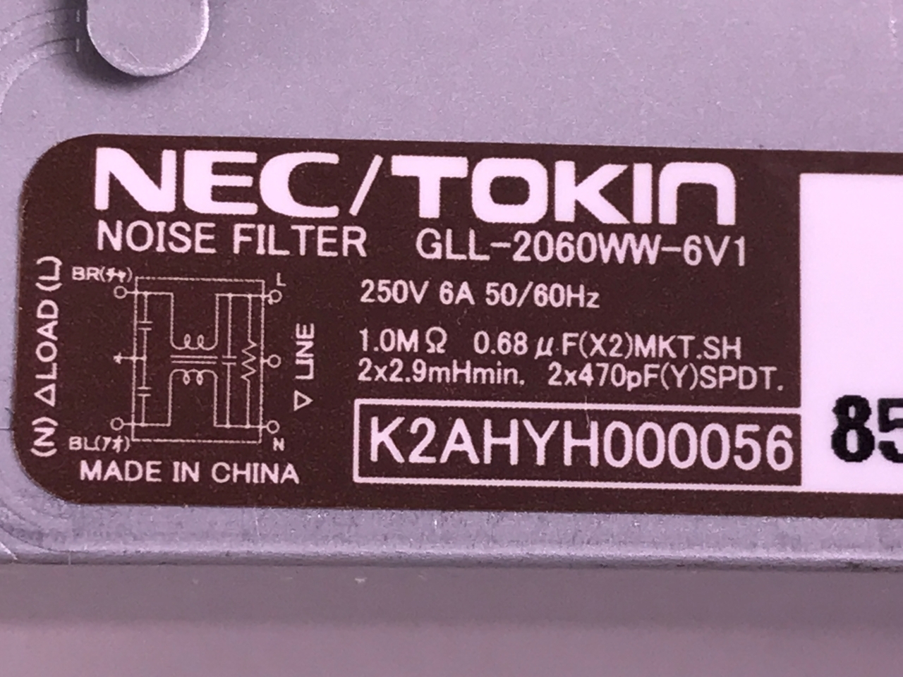Manufacturer part number: K2AHYH000056, GLL-2060WW-6V1, 250V/6A, 50/60Hz, NEC/TOKIN