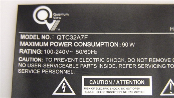 THIS PART PULLED FROM WORKING 32" QUANTUM VIEW LCD MODEL # QTC32A7F.