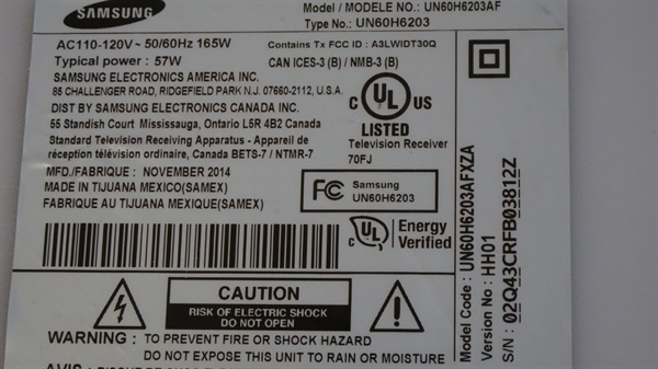 THIS PART WAS PULLED FROM DAMAGE SAMSUNG 60" LED MODEL # UN60H6203AF, MODEL CODE: UN60H6203AFXZA.