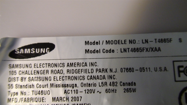 THIS PART WAS PULLED FROM SAMSUNG 46" LCD, MODEL# LN-T4665F, MODEL CODE : LNT466FX/XAA, TYPE No : TU46U0, UNIT WORKING COMPATIBLE ALL MODEL # BELOW.