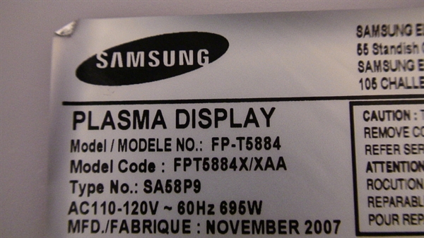 THIS PARTS WE PULLED FROM WORKING SAMSUNG 58" PLASMA TV MODEL # FP-T5884, MODEL CODE:FPT5884X/XAA, TYPE NO : SA58P9, THIS PARTS WORKING COMPATIBLE WITH ALL MODEL # BELOW.