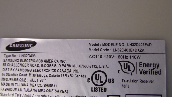 THIS PART PULLED FROM WORKING SAMSUNG LCD TV 32" MODEL# LN32D403E4D, MODEL CODE: LN32D450G1DXZA, UNIT WORKING COMPATIBLE ALL MODEL # BELOW.