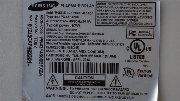 THIS PART WAS PULLED FROM SAMSUNG 43" PLASMA TV, MODEL # PN43F4500BFXZA, UNIT WORKING COMPATIBLE ALL MODEL # BELOW.