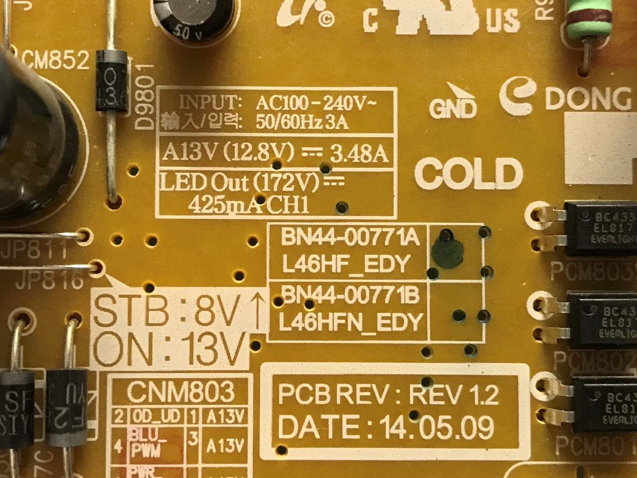 BN44-00771B, BN44-00771A, L46HF_EDY, UN46H5203AFXZA, UN46H5203AF, UN46H6201AF, UN46H6201AFXZA, SAMSUNG 46 LED TV POWER SUPPLY