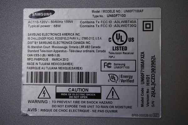 Samsung UN60F7100AFXZC