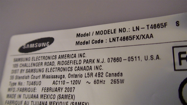 THIS PART WAS PULLED FROM SAMSUNG 46" LCD MODEL # LN-T4665F S, MODEL CODE # LN-T4665FX/XAA UNIT WORKING COMPATIBLE ALL MODEL # BELOW.