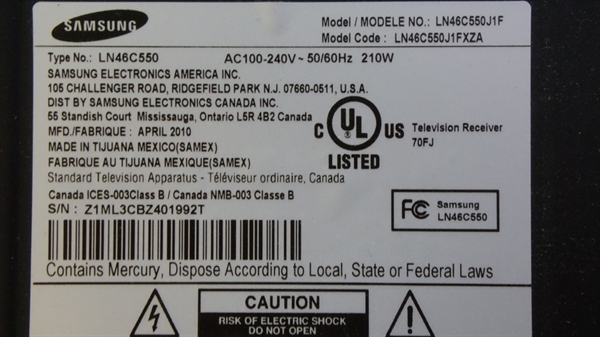 THIS PART PULLED FROM WORKING 46" SAMSUNG LCD TV, MODEL # LN46C550J1F, UNIT WORKING COMPATIBLE ALL MODEL # BELOW.