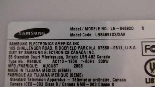 THIS PART PULLED FROM WORKING 46" SAMSUNG LCD MODEL# LN-S4692D, UNIT WORKING COMPATIBLE ALL MODEL # BELOW.