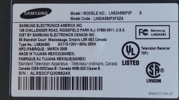 Manufacturer part number: BN94-01723K, BN94-01628V, BN94-01628K, BN94-02517A, BN96-09451A, BN41-00975B, BN97-01985V, LN52A530P1FXZA